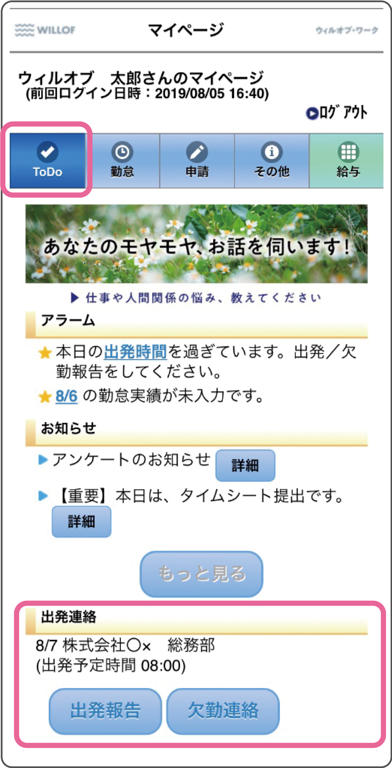 欠勤する場合、必ず就業時間前までにご連絡をお願いいたします。
